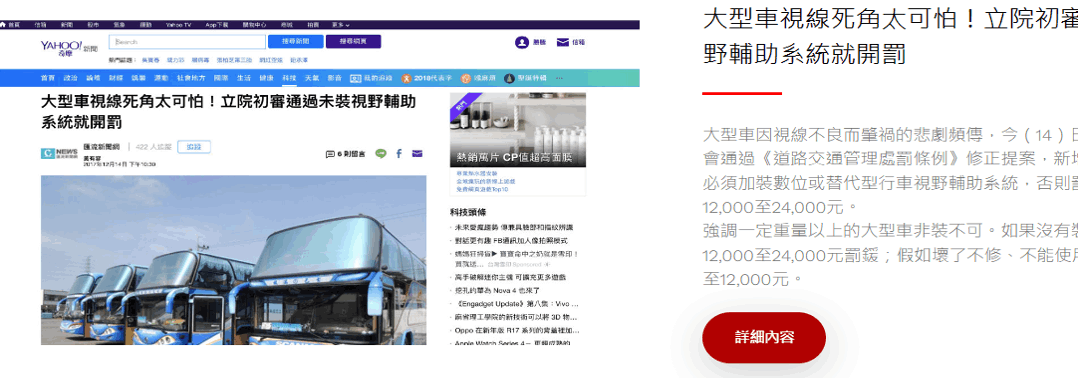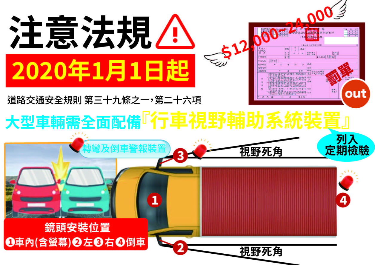 視野輔助功能-> 符合現行大貨車驗車規格(驗車免煩惱)。